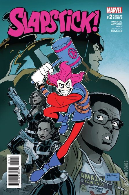 Slapstick vs. Bro-Man! Who or what is Bro-Man? Well, look at the cover! He’s another cartoon-like character! Also, is it weird that Slapstick is hiding a mad scientist in his parents’ basement? Probably!