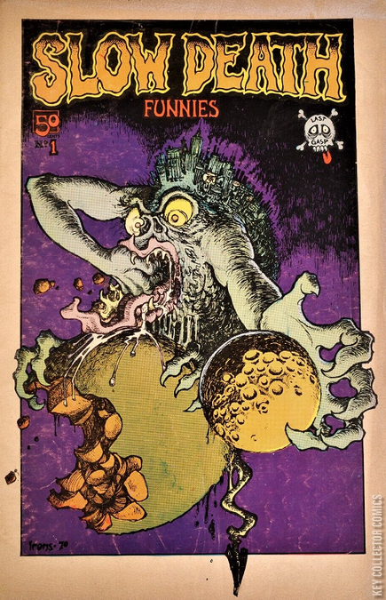 The first comic published by Last Gasp. Cover by Greg Irons. Dave Sheridan, Gilbert Shelton, and Robert Crumb, and other various artists contribute their talent to explore the Last Gasp theme - "Man destroying Earth" - in one-pagers and short stories. Stories 'n' art by Greg Irons, Willie Mendes, Gary Grimshaw, Dave Sheridan, Jim Osborne, Jim Evans, Randy Tuten, Gilbert Shelton, Fred Schrier, Rory Hayes, Jeffery Hayes, Ron Cobb, Jack Jackson, Kim Deitch, Robert Crumb, and Tony Auth. 1st Printing easily identified by red border around cover. The 2nd, 3rd, and 4th printings all have a white border around the cover and are considered indistinguishable from one another. 6 1/2" x 9 7/8", b&w, slick cover, 32 pages. Mature Readers. Cover price $0.50.