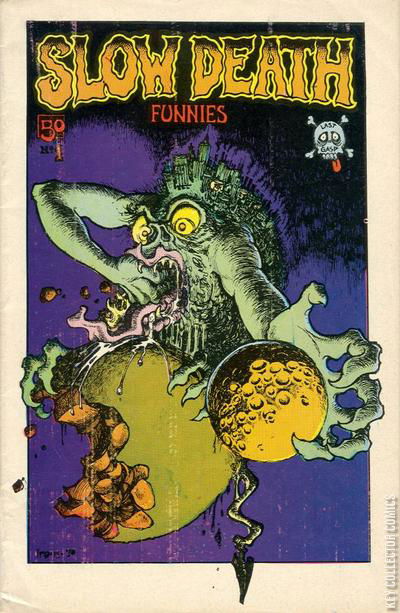 The first comic published by Last Gasp. Cover by Greg Irons. Dave Sheridan, Gilbert Shelton, and Robert Crumb, and other various artists contribute their talent to explore the Last Gasp theme - "Man destroying Earth" - in one-pagers and short stories. Stories 'n' art by Greg Irons, Willie Mendes, Gary Grimshaw, Dave Sheridan, Jim Osborne, Jim Evans, Randy Tuten, Gilbert Shelton, Fred Schrier, Rory Hayes, Jeffery Hayes, Ron Cobb, Jack Jackson, Kim Deitch, Robert Crumb, and Tony Auth. 1st Printing easily identified by red border around cover. The 2nd, 3rd, and 4th printings all have a white border around the cover and are considered indistinguishable from one another. 6 1/2" x 9 7/8", b&w, slick cover, 32 pages. Mature Readers. Cover price $0.50.