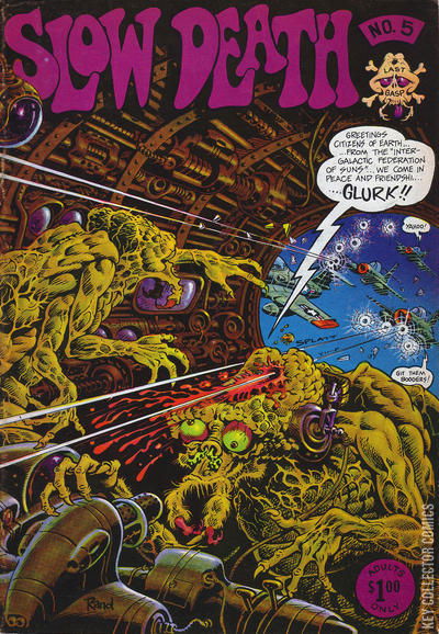 Underground comix anthology focusing on themes of science fiction and horror. Stories and art by Rand Holmes, Charles Dallas (of Psychotic Adventures), Greg Irons, Tom Veitch and Richard Corben, plus short pieces by Dave Sheridan and Jack Jackson. Black and white; 32 pages. Cover by Holmes. Cover price $0.50. ADULTS ONLY! 1st Printing - $0.50 cover price 2nd Printing - $0.75 cover price 3rd Printing - $1.00 cover price