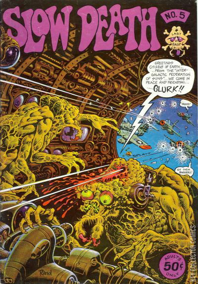 Underground comix anthology focusing on themes of science fiction and horror. Stories and art by Rand Holmes, Charles Dallas (of Psychotic Adventures), Greg Irons, Tom Veitch and Richard Corben, plus short pieces by Dave Sheridan and Jack Jackson. Black and white; 32 pages. Cover by Holmes. Cover price $0.50. ADULTS ONLY! 1st Printing - $0.50 cover price 2nd Printing - $0.75 cover price 3rd Printing - $1.00 cover price