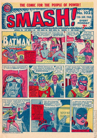 Home / IPC Magazines / Smash! / Smash! #102 IPC Magazines Released January 1968 Smash! #102 Add to Collection Want It Synopsis No synopsis available. Issue 68 of 173 Add to Collection Buy it on eBay Buy on eBay Low $5 Mid $15 High $50 Synopsis No synopsis available. Details Series Smash! Cover Date January 1968 Pages 28 UPC N/A Cover Price N/A Final Order Cutoff N/A Creators No creators listed. Price Guide Log in or subscribe to access detailed graded price information and market insights. Log In Subscribe