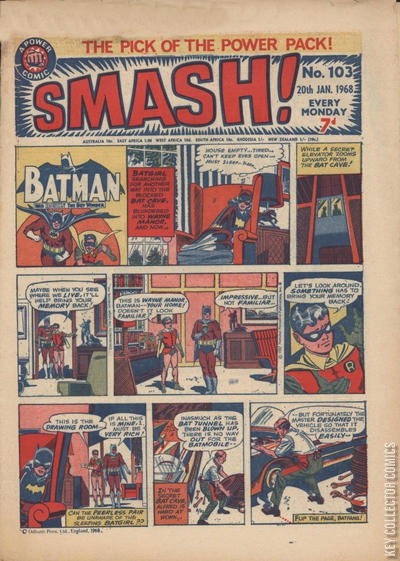 Home / IPC Magazines / Smash! / Smash! #103 IPC Magazines Released January 1968 Smash! #103 Add to Collection Want It Synopsis No synopsis available. Issue 69 of 173 Add to Collection Buy it on eBay Buy on eBay Low $5 Mid $15 High $50 Synopsis No synopsis available. Details Series Smash! Cover Date January 1968 Pages 28 UPC N/A Cover Price N/A Final Order Cutoff N/A Creators No creators listed. Price Guide Log in or subscribe to access detailed graded price information and market insights. Log In Subscribe