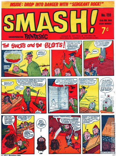 Home / IPC Magazines / Smash! / Smash! #159 IPC Magazines Released February 1969 Smash! #159 Add to Collection Want It Synopsis No synopsis available. Issue 97 of 173 Add to Collection Buy it on eBay Buy on eBay Low $5 Mid $15 High $50 Synopsis No synopsis available. Details Series Smash! Cover Date February 1969 Pages 36 UPC N/A Cover Price N/A Final Order Cutoff N/A Creators No creators listed. Price Guide Log in or subscribe to access detailed graded price information and market insights. Log In Subscribe