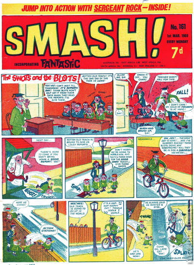 Home / IPC Magazines / Smash! / Smash! #161 IPC Magazines Released March 1969 Smash! #161 Add to Collection Want It Synopsis No synopsis available. Issue 98 of 173 Add to Collection Buy it on eBay Buy on eBay Low $5 Mid $15 High $50 Synopsis No synopsis available. Details Series Smash! Cover Date March 1969 Pages 36 UPC N/A Cover Price N/A Final Order Cutoff N/A Creators No creators listed. Price Guide Log in or subscribe to access detailed graded price information and market insights. Log In Subscribe