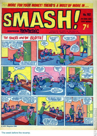 Home / IPC Magazines / Smash! / Smash! #162 IPC Magazines Released March 1969 Smash! #162 Add to Collection Want It Synopsis No synopsis available. Issue 99 of 173 Add to Collection Buy it on eBay Buy on eBay Low $5 Mid $15 High $50 Synopsis No synopsis available. Details Series Smash! Cover Date March 1969 Pages 36 UPC N/A Cover Price N/A Final Order Cutoff N/A Creators Cover Artist Mike Lacey Price Guide Log in or subscribe to access detailed graded price information and market insights. Log In Subscribe