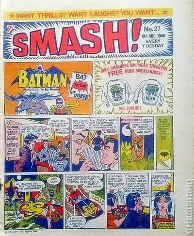 Home / IPC Magazines / Smash! / Smash! #27 IPC Magazines Released August 1966 Smash! #27 Add to Collection Want It Synopsis No synopsis available. Issue 20 of 173 Add to Collection Buy it on eBay Buy on eBay Low $5 Mid $15 High $50 Synopsis No synopsis available. Details Series Smash! Cover Date August 1966 Pages 28 UPC N/A Cover Price N/A Final Order Cutoff N/A Creators No creators listed. Price Guide Log in or subscribe to access detailed graded price information and market insights. Log In Subscribe