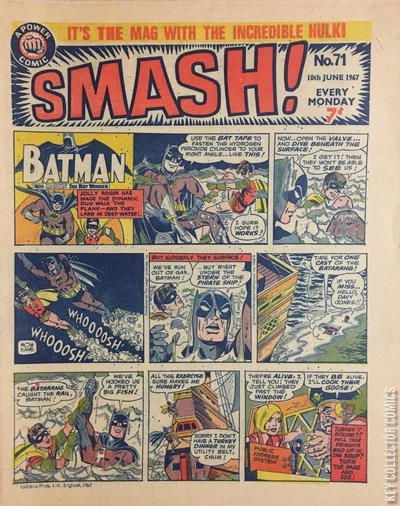 Home / IPC Magazines / Smash! / Smash! #71 IPC Magazines Released June 1967 Smash! #71 Add to Collection Want It Synopsis No synopsis available. Issue 49 of 173 Add to Collection Buy it on eBay Buy on eBay Low $5 Mid $15 High $50 Synopsis No synopsis available. Details Series Smash! Cover Date June 1967 Pages 28 UPC N/A Cover Price N/A Final Order Cutoff N/A Creators Cover Artist Joe Giella Price Guide Log in or subscribe to access detailed graded price information and market insights. Log In Subscribe