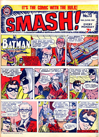 Home / IPC Magazines / Smash! / Smash! #73 IPC Magazines Released June 1967 Smash! #73 Add to Collection Want It Synopsis No synopsis available. Issue 51 of 173 Add to Collection Buy it on eBay Buy on eBay Low $5 Mid $15 High $50 Synopsis No synopsis available. Details Series Smash! Cover Date June 1967 Pages 28 UPC N/A Cover Price N/A Final Order Cutoff N/A Creators Cover Artist Joe Giella Price Guide Log in or subscribe to access detailed graded price information and market insights. Log In Subscribe