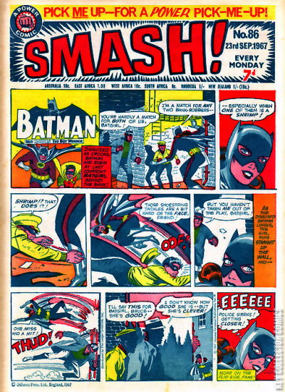 Home / IPC Magazines / Smash! / Smash! #86 IPC Magazines Released September 1967 Smash! #86 Add to Collection Want It Synopsis No synopsis available. Issue 58 of 173 Add to Collection Buy it on eBay Buy on eBay Low $5 Mid $15 High $50 Synopsis No synopsis available. Details Series Smash! Cover Date September 1967 Pages 28 UPC N/A Cover Price N/A Final Order Cutoff N/A Creators Cover Artist Joe Giella Price Guide Log in or subscribe to access detailed graded price information and market insights. Log In Subscribe
