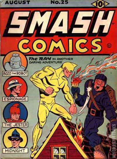 A collection of comics and stories, including -- "Mitch Mouldin " , featuring the Ray : A violent and well-organized crime wave runs rampant throughout the Ray's hometown. When a civilian and a couple of reporters get too close to the most recent crime, they quickly find themselves kidnapped. Happy Terrill, investigating the case himself, discovers what has happened and leaps in to save the day as the Ray! -- "Liver-Lip McGaw" , featuring Midnight : An extremely mean and ill-tempered mobster, Liver-Lip McGaw, has just killed off the last of his own stooges, and he's looking for more to recruit. He had wanted to shake down the Acme Motor factory, but now changes plans, and starts forcing the workers to sabotage their own plant, at night, lest he harm their families. -- "Sabotage at the Navy Yard" , featuring the Jester : Detective Mulligan spots a guy sneaking into the Navy Yard with a stick of dynamite, then the Jester shows up and throws Mulligan in the river, telling the dynamite guy to leave. This is all the proof Mulligan needs to convince himself that the notorious vigilante is actually a crook himself. PLUS : The Invisible Hood, Wings Wendall, Black X, Bozo the Robot, and more!!