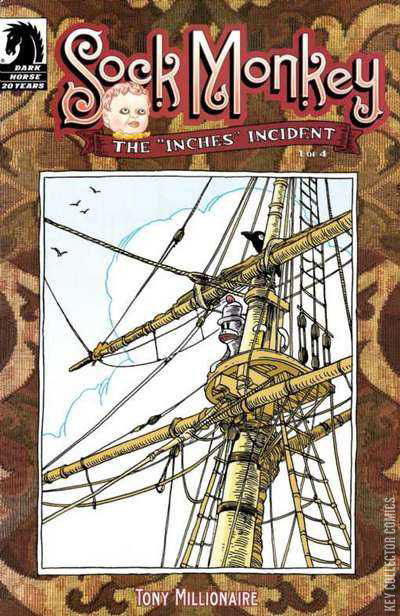 Tony Millionaire returns to his original style with this new four-issue Sock Monkey series. Uncle Gabby and Mr. Crow find themselves aboard a whaling ship at sea, and attempt to build a raft to escape the insane captain. Unfortunately, the captain gets wise and furiously rows after them in his whale boat. A giant sea serpent swirls into the mix, resulting in an old-fashioned Nantucket sleigh ride! If you have any hatches, batten them down, there's a storm a-brewin'!