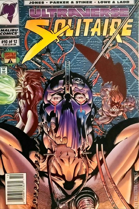 "Hole In The Head" Solitaire joins in the fight for corporate supremacy!� The Night Man and Prototype guest star.� While all this is happening, Anton Lone makes plans of his own.� He makes a bold move to seize control over all the ultra-creating technology known to exist.� This all builds up to the final conflict between Solitaire and Anton Lone, the father he wishes he never had.� Cover by Scott Kolins and Jon Holdredge.