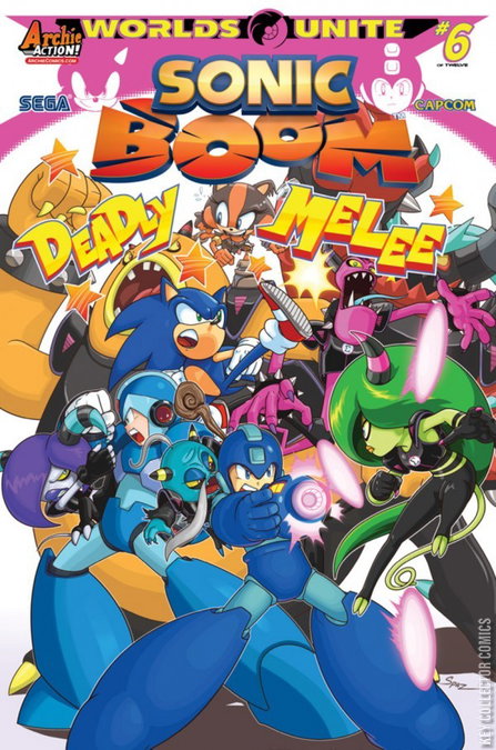 The Sonic/Mega Man crossover event goes boom! 'Worlds Unite,' Part Six: The war against Sigma has been waged! Sonic, Mega Man and X lead their unified friends against hordes of mechaniloids led by the armored, super-powered Deadly Six! That sounds pretty scary and exciting, and now is definitely the time for everyone to work together and pay close attention. Especially Sticks. She tends to do some distracting stuff, like falling off the Sky Patrol and landing into a Genesis Portal or something-wait? Did she really? You won't believe where Sticks lands, but what you better believe is that this issue sports some awesome cover art by Patrick 'SPAZ' Spaziante and the return of the Evil Friends Forever (E.F.F.) variant by Brent McCarthy! Plus part 6 of the epic 12-part connecting variant cover series by artist Ben Bates!