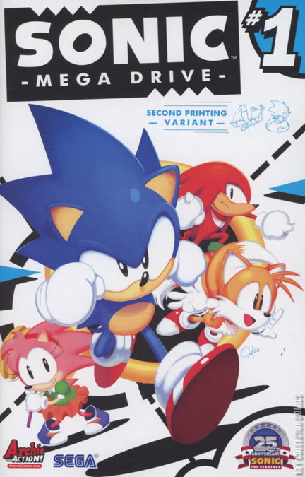 Sonic spins into a brand new, Classic-styled, SUPER SPECIAL one-shot “Mega Drive”! Join Sonic, Tails, Knuckles and Amy Rose on a brand new adventure—set after the fall of the Death Egg! The nefarious Dr. Eggman is trying to build a new engine of destruction: the MEGADRIVE, and it’s up to Sonic and his whole crew to stop the mad doctor and save the day! Join Sonic and his friends in this special commemorative issue celebrating the 25th Anniversary of the Blue Blur!