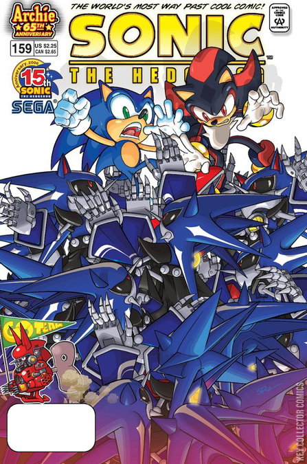 "System Reboot": The action-packed, multi-issue epic comes to a sensational end... and the non-stop thrills are bound to leave your head spinning! As their robotic creations wreck havoc around them, the contrast between the malevolent Dr. Robotnik and the benevolent Uncle Chuck is heightened. Now Sonic, Knuckles and all the good citizens of Knothole Village must restore order from the Metal Sonic Troopers... and you won't believe who their latest ally is! SCRIPT: PLUS: The tradition of sizzling Sonic short stories continues with another great back-up tale! Featuring a heart-thumping cover by razzlin' dazzlin' Spaz!