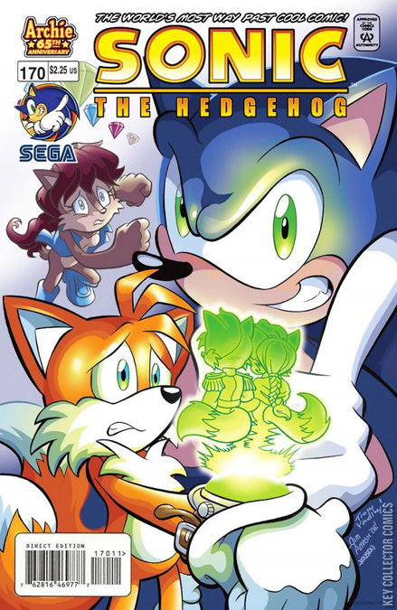 "Comings & Goings": The countdown to the milestone 175th issue kicks off in royal style. In recent battles, Sonic and the Freedom Fighters have suffered some devastating losses. but how can they possibly withstand much more? As the King lies at death's door, Sonic, Knuckles and Tails go to the farthest reaches of the universe on a mission to save the day. Can anyone prepare them for the surprises they find there? Not to mention the new threat of diabolical tyrant Robotnik and the mysterious Shadow joining forces! Will evil rule the day, or will this new alliance simply pit Shadow and Eggman at each other's throats?! "Island of Misfit Badniks": In a story inspired as supplemental to the new "Sonic Archives" paperback reprint series, original series writer Mike Gallagher and artist Dave Manak finally explain what happened to all of Robotnik's old robots and Badniks. and inadvertently re-awaken some of the deadliest villains from Sonic's early days, a mistake that may spell out Sonic's doom!