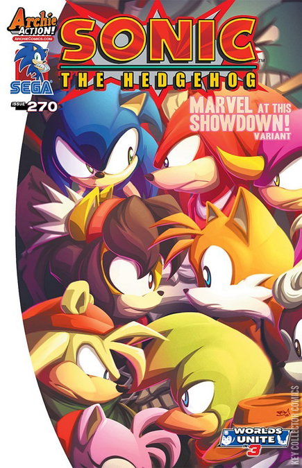 'Champions,' Part 3. The battle for the Chaos Emerald is reaching a fevered pitch! Hero versus hero! Villain versus villain! Will Dr. Eggman be content to play by the rules? Will Metal Sonic come in and shake things up? And what exactly is the secret history between Metal Sonic and casino mogul Breezie? All of the answers await you in this thrilling, penultimate chapter! Featuring all-new cover art from one of the newest Sonic superstars Jennifer Hernandez, plus a special 'Marvel at the Showdown' variant cover by the incomparable Brent McCarthy!