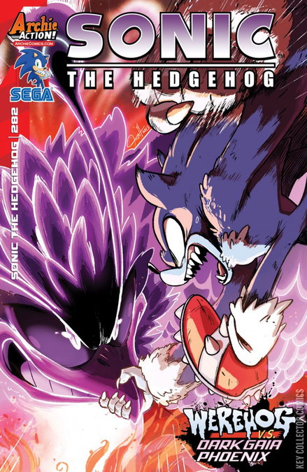 'Wings of Fire,' Part 2. When Sonic was infected with the Dark Gaia energy, he nearly all lost control of his mutant Werehog form. So what happens when an ancient and powerful phoenix gets turned to the dark side? It's a three-way battle as Sonic and Dulcy's teams battle for their lives against the Dark Gaia Phoenix and Egg Army! Then, in 'Shards and Sparks,' Knuckles and Mighty reunite to take on Egg Boss Thunderbolt! Featuring cover art by the terrific Tyson Hesse and a spooky 'Horror Movie' variant by the mega-talented T. Rex!