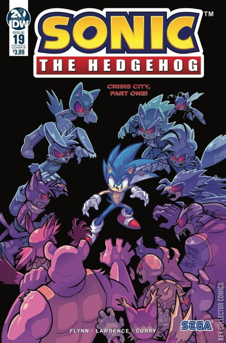 CRISIS CITY, PART ONE Eggman's reign of terror continues! Sonic races to help Team Dark rescue civilians from a major city, but his own metal virus infection is getting worse! Outnumbered, how long can Sonic outrun the inevitable? And who else will fall? A major cornerstone of the metal virus saga! One of Sonic's most powerful allies falls victim to the disease, but who? Cover A by new-to-IDW Sonic artist Ryan Jampole !
