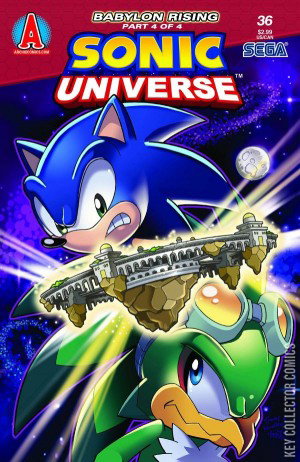 'Babylon Rising,' Part Four. Babylon Garden has been found! New Mobotropolis is under siege! The Battle Bird Armada attacks from the sky, and Sonic enters into a desperate race against the Babylon Rogues! As chaos reigns, an ancient secret will be revealed that could destroy not only the cities, but the entire world! You cannot miss the stunning conclusion to artistic legend Tracy Yardley's debut Sonic Universe arc!
