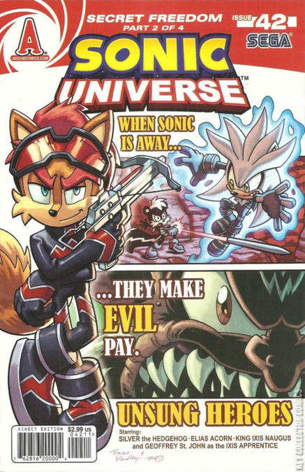 "Unsung Heroes," Part Two: When Sonic is away, the Secret Freedom Fighters make evil pay! Deep under the city, in the scar left by the Battle Bird Armada, the evil wizard Ixis Naugus is shaping the earth to his whim. Elias, the deposed king, must lead his squad of Secret Freedom Fighters to find out what's going on! But with Naugus able to control the stones and shadows, will Elias' team emerge alive?