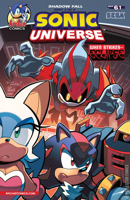 'Shadow Fall' Part Three: Shadow - agent of the brutal Black Arms? It's up to Rouge and Omega to bring their former friend to his senses - if he doesn't destroy them all first! Meanwhile, the vicious alien race have stolen G.U.N.'s tactical nuclear device for - and that can only spell trouble! Will Team Dark survive the mission with the deadly and devious ECLIPSE lurking in the shadows? Find out in the penultimate chapter to this expansive space epic, featuring cover art from Tracy Yardley! and a special SEGA variant cover!