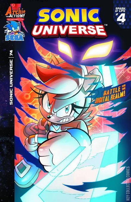 The final showdown for the fate of the digital realm is here! 'Spark of Life' Part Four: It's pandemonium aplenty in this conclusion to the stunning 'Spark of Life' story arc! Who, or what, is Phage? Introductions aren't necessary; she's creating havoc for our heroes anyway! Tails and Big-menaced by badniks and Dark Gaia Monsters alike! A Chaos Emerald, about to fall into enemy hands! Nicole, on the brink of deletion! Will Sally sacrifice it all to save her friends and the world? Featuring cover art from Sonic comic artist extraordinaire Tracy Yardley, and a special SEGA-art Tails variant cover!