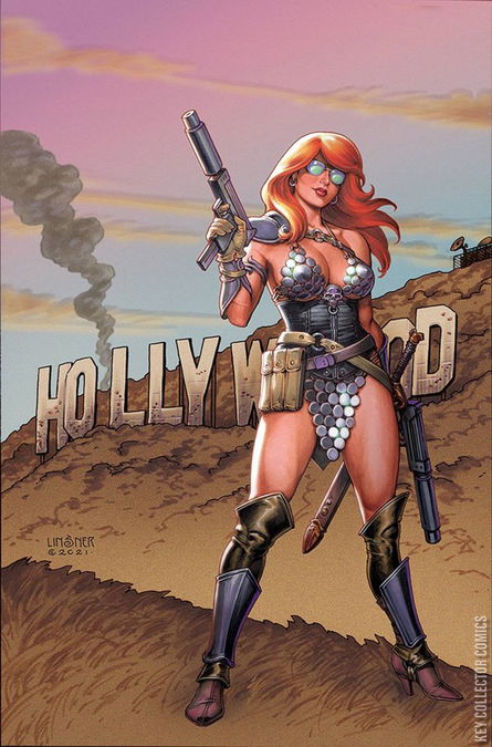 In the far-flung sci-fi future, PURPLE SONJA and her mech act as scouts for a space pilgrimage of the remaining members of humanity fleeing Earth. This scouting is made difficult by the return of Purple Sonja's greatest enemy Kaiju descending upon her. Her demise is all but assured, until she receives help from...HELL SONJA!?