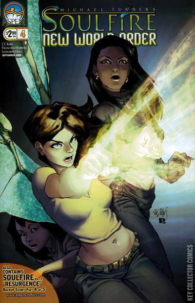 In this issue, the family ties that bind Manny and Cruz finally snap-with deadly results! Rainier and the bounty hunters decide that in order to obtain their respective goals, they will need to unite together, under one malevolent banner of oppression. And, with the law hunting them down and closing in on them, Heather, Pili, and Cruz face a crossroads, with choices that will forever change their relationship together! Brought to you by the acclaimed international art team of Francisco Herrera and Leonardo Olea, with words provided by scribe J. T. Krul, SOULFIRE: NEW WORLD ORDER will leave you clamoring for more! Plus, this 4th issue also includes part 4 of a special 4 page back-up story brought to you by the upcoming SOULFIRE Volume 2 creative team of J.T. Krul, Marcus To, Saleem Crawford and Beth Sotelo. This bonus story continues throughout the entire SOULFIRE: NEW WORLD ORDER series, providing you with two incredible SOULFIRE tales for the price of one!