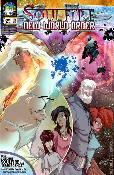 It's showdown time! The pulse-pounding conclusion to SOULFIRE: NEW WORLD ORDER sees Cruz ultimately decide what path-and role-he will take in this new world. Meanwhile, Pili and Heather attempt to not only escape the ruthless Dragon Riders but also the magic-siphoning grasp of the madman, Cole. And just when things couldn't get any bleaker for the pair, the arrival of Saxon and Blackjack adds to the chaos, forcing an all-out battle for life and death! Brought to you by the acclaimed international art team of Francisco Herrera and Leonardo Olea, with words provided by scribe J. T. Krul, SOULFIRE: NEW WORLD ORDER will leave you clamoring for more! Plus, this final 5th issue also includes part 5 of a special 4 page back-up story brought to you by the upcoming SOULFIRE Volume 2 creative team of J.T. Krul, Marcus To, Saleem Crawford and Beth Sotelo. This unique bonus story leads directly into this month's SOULFIRE Volume 2 #0 issue, providing you with two incredible SOULFIRE tales for the price of one!