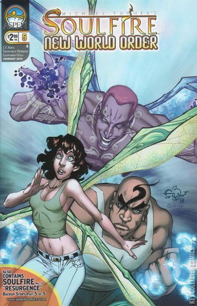 It's showdown time! The pulse-pounding conclusion to SOULFIRE: NEW WORLD ORDER sees Cruz ultimately decide what path-and role-he will take in this new world. Meanwhile, Pili and Heather attempt to not only escape the ruthless Dragon Riders but also the magic-siphoning grasp of the madman, Cole. And just when things couldn't get any bleaker for the pair, the arrival of Saxon and Blackjack adds to the chaos, forcing an all-out battle for life and death! Brought to you by the acclaimed international art team of Francisco Herrera and Leonardo Olea, with words provided by scribe J. T. Krul, SOULFIRE: NEW WORLD ORDER will leave you clamoring for more! Plus, this final 5th issue also includes part 5 of a special 4 page back-up story brought to you by the upcoming SOULFIRE Volume 2 creative team of J.T. Krul, Marcus To, Saleem Crawford and Beth Sotelo. This unique bonus story leads directly into this month's SOULFIRE Volume 2 #0 issue, providing you with two incredible SOULFIRE tales for the price of one!