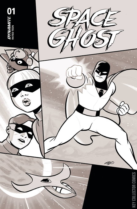 Greed and corruption flourish in the darkness between stars. With the territories of the Galactic Federation spread far and wide across the vastness of space, pirates and hijackers ransack the distant colonies with cruel disregard for the innocent scientists living within them. Yet there is a cosmic vigilante who metes out justice throughout the galaxy, bringing vengeance to those prey upon the defenseless. Some say he is a policeman who has abandoned the strictures of the law. Others say he is a phantom, the sole survivor of a war-torn planet. And those who have survived his wrath claim he is more a force of nature, able to bend the very elements of Creation to decimate his enemies. They call him the SPACE GHOST - and his adventures begin here! Award-winning writer DAVID PEPOSE (Punisher) and superstar artist JONATHAN LAU (Vampirella Strikes) kick off this action-packed series with a surprise attack on Space Colony Omicron - home of the brilliant scientist Dr. Jerrod Keplar and his young children, Jan and Jace, as well as their pet monkey, Blip. With the colony's defenses overwhelmed, all seems lost - but these ruthless pirates didn't count on the wild card that is Space Ghost! This debut issue also includes covers from some of the finest artists in the known universe - including FRANCESCO MATTINA, JAE LEE & JUNE CHUNG, BJORN BARENDS, and MICHAEL CHO!