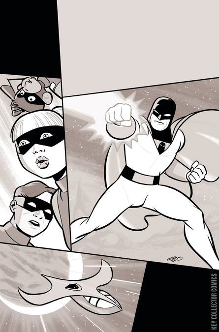 Greed and corruption flourish in the darkness between stars. With the territories of the Galactic Federation spread far and wide across the vastness of space, pirates and hijackers ransack the distant colonies with cruel disregard for the innocent scientists living within them. Yet there is a cosmic vigilante who metes out justice throughout the galaxy, bringing vengeance to those prey upon the defenseless. Some say he is a policeman who has abandoned the strictures of the law. Others say he is a phantom, the sole survivor of a war-torn planet. And those who have survived his wrath claim he is more a force of nature, able to bend the very elements of Creation to decimate his enemies. They call him the SPACE GHOST - and his adventures begin here! Award-winning writer DAVID PEPOSE (Punisher) and superstar artist JONATHAN LAU (Vampirella Strikes) kick off this action-packed series with a surprise attack on Space Colony Omicron - home of the brilliant scientist Dr. Jerrod Keplar and his young children, Jan and Jace, as well as their pet monkey, Blip. With the colony's defenses overwhelmed, all seems lost - but these ruthless pirates didn't count on the wild card that is Space Ghost! This debut issue also includes covers from some of the finest artists in the known universe - including FRANCESCO MATTINA, JAE LEE & JUNE CHUNG, BJORN BARENDS, and MICHAEL CHO!
