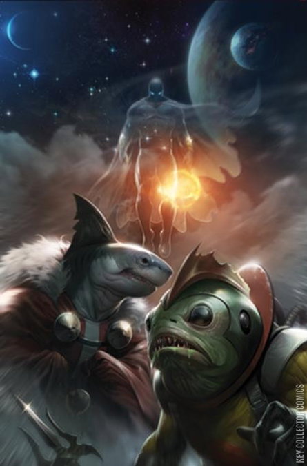 THE FATE OF PIRANHOR IS REVEALED! With tensions running hot after a failed assassination attempt, the war between Emperor Glasstor of the Crystalline Empire and King Remora of the Space Sharks reaches its boiling point, and Space Ghost must stop a mysterious planet-killing weapon known as Neptune’s Wrath! Can Jan and Jace find the true culprit behind this war of the worlds? Or will Remora and Glasstor’s long-running rivalry usher in a new era of bloody carnage across the galaxy? Find out in the fifth senses-shattering issue of DAVID PEPOSE and JONATHAN LAU’s Space Ghost — featuring a stellar series of covers from FRANCESCO MATTINA, JAE LEE & JUNE CHUNG, MICHAEL CHO, and BJORN BARENDS!