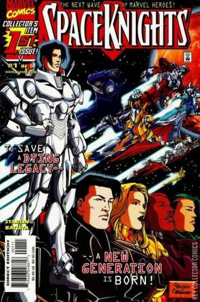 From the depths of outer space, the Spaceknights return! Rom, Marvel's first Spaceknight, spent years banishing the evil Dire Wraiths from Earth. Finally successful, the gleaming guardian returned home to become the king of his homeworld, Galador. But now that Rom has disappeared, it's up to his two sons, Tristan, the Liberator, and Balin, also known as Terminator, to carry on his legacy! But which one will wield Rom's mighty Neutralizer? Broken into squadrons, the Spacknights are the peacekeeping protectors of their galaxy. But what they don't know, however, is that their greatest threat has returned in a form they never thought possible! Now it's time to meet the new cosmic warriors: Starshine, leader of this new generation, Pulsar with his rays of destruction, Firefall, wielder of the Living Flame, Sentry, a member of the winged Angel Elite, Hammerhand and his fists of steel, Javelin, master of an unbreakable staff of Plandanium steel, Scanner, fastest of them all, and the other new Spaceknights as they face off against the undying threat of the dreaded Dire Wraiths! If you've been hungering for cosmic action from Marvel, this one's for you! Written by the master of the cosmic tale, Jim Starlin, with amazing art by Chris Batista, and wait until you see his redesigns!