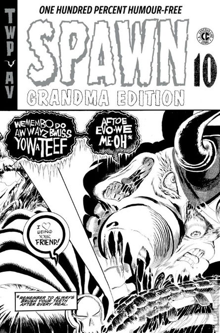 Dave Sim and Aardvark-Vanaheim have partnered with The Waverly Press to present Sim’s new modified version of this classic tale published nearly three decades ago expanded, with new content and rarities from this comics milestone. It’s still as fresh and relevant today as when it first appeared. While the original edition of SPAWN No. 10 was published in full color, this special edition - at Dave Sim’s insistence - presents the story in black and white. In the original edition, McFarlane drew what Dave Sim has called “the definitive Cerebus” (“...more people saw Todd’s Cerebus that one month than had seen my Cerebus in the decade prior to SPAWN No. 10”). Working gingerly and painstakingly around his career-ending (2015) wrist ailment, Sim fulfilled what he calls a “last ambition” to render the Kitchener Sequence as he originally pictured it, and to produce three new covers. He also redrew the Cerebus figures throughout the issue.