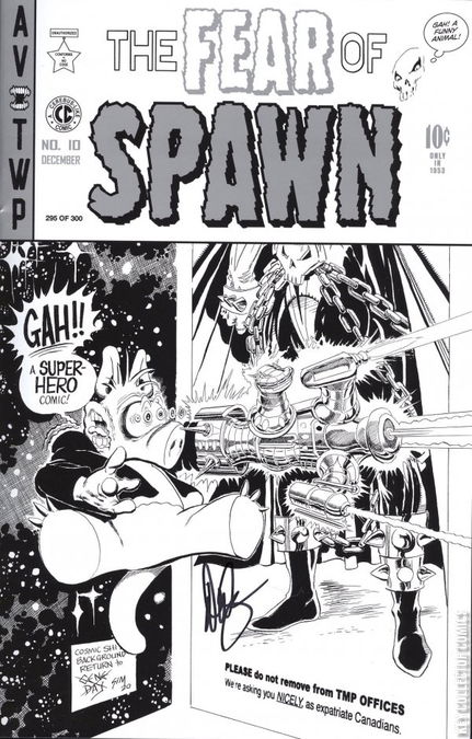 Dave Sim and Aardvark-Vanaheim have partnered with The Waverly Press to present Sim’s new modified version of this classic tale published nearly three decades ago expanded, with new content and rarities from this comics milestone. It’s still as fresh and relevant today as when it first appeared. While the original edition of SPAWN No. 10 was published in full color, this special edition - at Dave Sim’s insistence - presents the story in black and white. In the original edition, McFarlane drew what Dave Sim has called “the definitive Cerebus” (“...more people saw Todd’s Cerebus that one month than had seen my Cerebus in the decade prior to SPAWN No. 10”). Working gingerly and painstakingly around his career-ending (2015) wrist ailment, Sim fulfilled what he calls a “last ambition” to render the Kitchener Sequence as he originally pictured it, and to produce three new covers. He also redrew the Cerebus figures throughout the issue.
