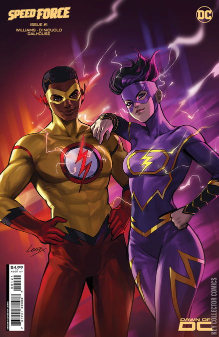 Wallace West and Avery Ho: the young speedsters have been Teen Titans, Justice Leaguers, and above all, members of the Flash Family. As they become aware of mysterious changes happening to the Speed Force, they race to Keystone City, where they encounter old friends, new threats, and a chance to forge their own paths. Spinning out of the pages of The Flash, the team of Jarrett Williams (Super Pro K.O., Rick & Morty) and Daniele Di Nicuolo (Nightwing, Mighty Morphin Power Rangers), bring the next generation of Speedsters into the Dawn of DC!