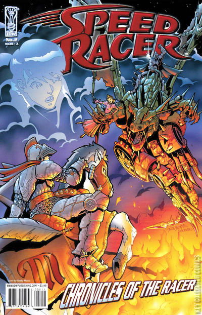Cover by Robby Musso. Arie Kaplan (w); Robby Musso (a); Musso, Rob & Joe Sharp (c) Arie Kaplan and Robby Musso continue to tell the story of past Racers throughout history. In medieval England, inexperienced teenager Sprint Rackham must outrace a madman who's kidnapped Lady Beatrix via his giant mechanical dragon. Even with a suit of armor designed by a wizard, can Sprint rescue her in time? Meanwhile in the present, Speed, Racer X, and Trixie find themselves one step closer to the mystery carjacker, as they come under attack in a super-garage beneath Mercury Pictures! Cover price $3.99.