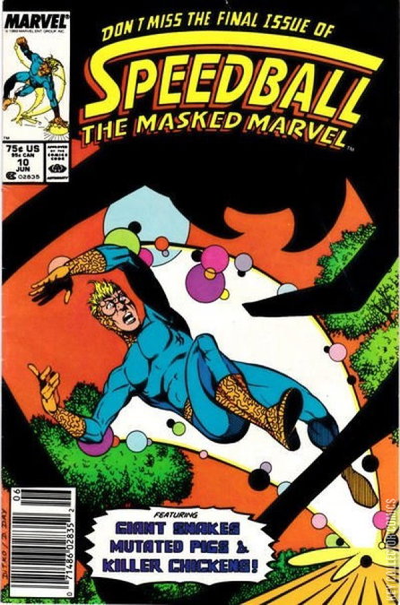 Some scientists' experiments to help end world hunger have some very startling and dangerous results. So it's up to Robbie Baldwin as Speedball to clean up the mess in "Some Pig." Script by Steve Ditko & Jo Duffy and art by Steve Ditko & D. Day. Final issue of series.