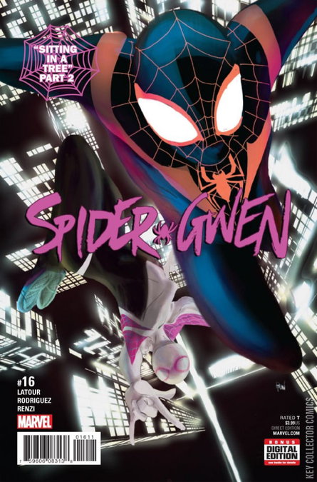 SITTING IN A TREE, PART 2 Continuing the story from SPIDER-MAN #12 , Miles and Gwen find themselves in an Earth-65 adventure that’s going to rock both of their worlds (and universes). Don’t forget to reserve your copy of this mini-crossover!
