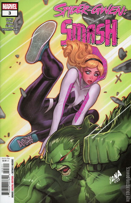 After an amazing concert in Los Angeles, Gwen is hoping for a quiet day off with the Mary Janes, but that is quickly ruined when Dazzler goes missing! Plus the secret origin of Earth 65's HULK is finally revealed!