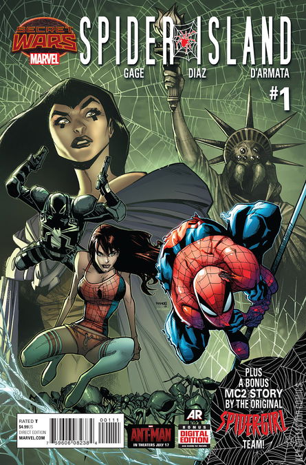 The Spider-Queen has turned Manhattan into an island of Spider-Madness and Peter Parker has lost, thanks to Spider-Scribe CHRISTOS GAGE (AMAZING SPIDER-MAN, SUPERIOR SPIDER-MAN) & rising star artist PACO DIAZ (WOLVERINE, SCARLET SPIDERS). With Spider-Man defeated and captive, does Flash Thompson, A.K.A. VENOM stand a chance? All this, plus visit the MC2 patch of BATTLEWORLD! Mayday Parker and her Spider-Family are back courtesy of classic Spider-Girl team TOM DEFALCO, RON FRENZ & SAL BUSCEMA!