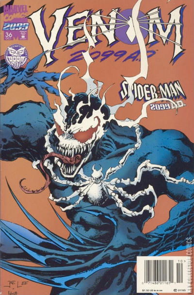 - Connecting cover art by Jae Lee featuring Venom 2099 attacking Spider-Man 2099