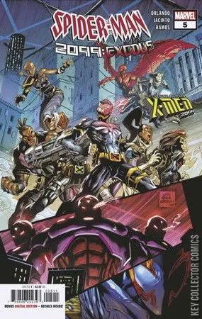 EXODUS, PART V SPIDER-MAN FACES OFF WITH 2099’s X-MEN! As SPIDER-MAN races to shut down the CABAL, they show up at the Garden’s gate…but the Garden’s occupied. At its epicenter is a mutant, somehow fallen from the stars, and the nomadic X-MEN fight to claim the Garden as their new home. Will SPIDER-MAN respect their claim? Or will he try to take the Garden for humans? And even if they can co-exist, what’ll Spider-Man and the X-Men do about the CABAL SENTINELS breathing down their necks?