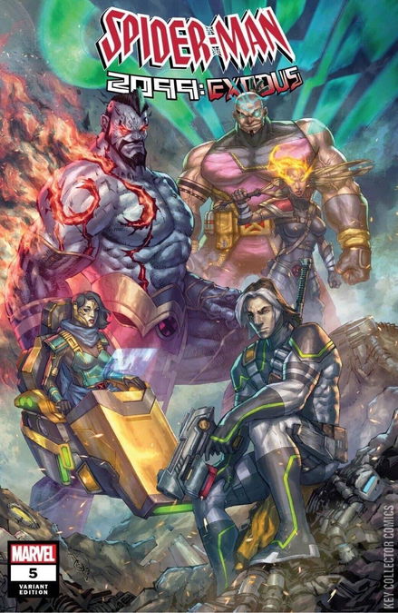 EXODUS, PART V SPIDER-MAN FACES OFF WITH 2099’s X-MEN! As SPIDER-MAN races to shut down the CABAL, they show up at the Garden’s gate…but the Garden’s occupied. At its epicenter is a mutant, somehow fallen from the stars, and the nomadic X-MEN fight to claim the Garden as their new home. Will SPIDER-MAN respect their claim? Or will he try to take the Garden for humans? And even if they can co-exist, what’ll Spider-Man and the X-Men do about the CABAL SENTINELS breathing down their necks?
