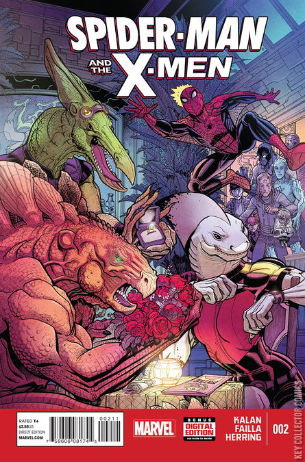 Bad Teacher! Spidey's already gotten his X-students captured by Sauron and Stegron! Can they stop the Savage Land from colonizing Staten Island? Traitor! Has Shark Girl really betrayed her classmates for these cold-blooded creeps? Romance! Have you ever seen a pteranodon/stegosaurus/shark love triangle? You will if you buy this issue!