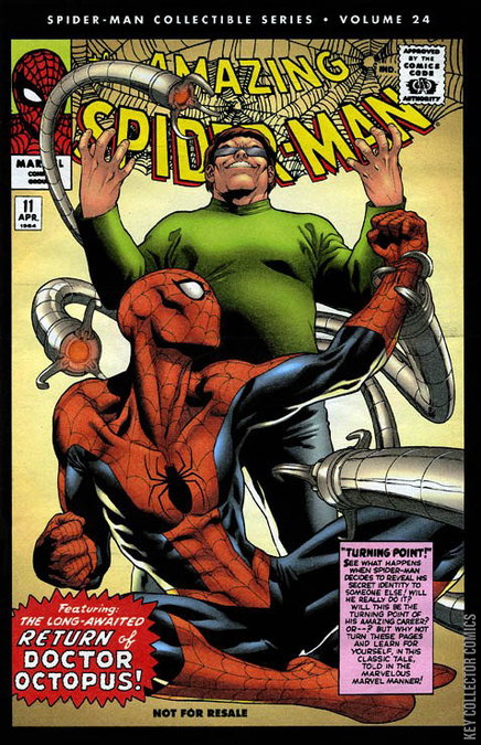 (Part 2) The issue starts with Peter Parker in his Spidey outfit sitting in his room thinking about Betty Brant who went out of town, as Peter thinks about why Betty Brant left, a special news bulletin came on the radio, the radio announced that Doctor Octopus was to be released today. After hearing the news, Peter forgets about Betty Brant and remember his hard time trying to defeat Doc Ock in #3. Peter puts on his mask and leaps into action. Spider-Man was heading towards the prison where Doctor Octopus was kept and spoke to the warden of the prison and persuading him not to let Doc Ock go. The warden refused and told Spider-Man to leave the prison before it was too late.We then see Doctor Octopus alone in his special cell and talks to himself about how clever not to try and escape while he was serving his time. Later, back at Peter's house, he was working on a device which alows him to track down who ever has got the device, he called it the Spider-Tracer. Next, we see Doc Ock leaving prison and making his way to a car, little does he know that a certain web-slinger called Spider-Man was right behind him hiding behind a tree. Spidey sees a girl in the car but cannot see clearly who it was but as he went closer to the car, he was sure of who she was, she was Betty Brant. Doc Ock and Betty drive off and Spidey throws his Spider-Tracer onto the roof of the car. A map was dropped while Betty drove off and Spidey picked it up and it was a map to Philadelphia. The scene then changes as we see two shadows in a prison cell. We then see Blackie Gaxton and Betty's brother in the prison cell. We then find out that Betty Brant's brother owed Blackie money and Betty's brother had to ask Betty for help. Blackie told Betty to go and pick Doc Ock up and drive him to his apartment. When he went back to his apartment, he see Doc Ock with Betty. We now go back to Peter where he lies to Aunt May about his trip to Philadelphia. Peter says that he's going there because he wanted to see the historical sites there.A few minutes later after a jet from New Yrok to Philadelphia, he swings with his Spider-Tracer transmitter on his neck and he is ready to find Doc Ock and Betty Brant. Then his transmitter picks up some signal from his Spider-Tracer, he then changed back into his casual clothes and found Betty. We then see Doc Ock walking through the city and going to a prison cell, we find out that his main mission was to go and break Blackie Gaxton out of prison. Next we see Spider-Man trying to go to the same prison trying to prevent Blackie's escape but he was too late. The police was there with a spotlight and they saw Spider-Man, they thought that Spider-Man was the one that helped Blackie escape and they tried to capture him but Spider-Man quickly swings away to somewhere safe. Spider-Man then swings to a ferry where Bennet and Betty Brant were kept. Spidey swings to a boat and didn't see a bunch of rope which was lying on the boat and he sprang his ankle, Blackie's gunmen captured Spidey and took him to Blackie and Doc Ock. Spidey then spins two pieces of webs and held on to them, he used his legs and kicked the gunmen until there were not much left. One of the gunmen knocks Doc Ock out of the boat and makes him unconcious for a mintue. Blackie then grabbed a gun and tried to shot Spider-Man but he failed to do so, Blackie was just firing to gun everywhere and one of the bullet that he fired hit Bennet Brant, he dies and Betty blames Spider-Man for his brother's death. While Betty was hitting Spider-Man, BLackie slowly escapes. He captures Blackie and he his gunmen but had to find Doc Ock.Spidey didn't find Doc Ock but Doc Ock found him, then battled but at the end, Doc Ock escaped. Betty then finds Peter and explains to him what happened to her brother.