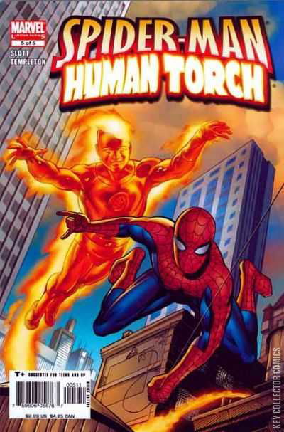 TOGETHER AGAIN Spider-Man and the Human Torch meet up at their usual place atop the Statue of Liberty. When they get talking about the first time they met at the Statue, the pair begin discussing all the times they have met there over the years. When they get to talking, Johnny begins to talk about times they fought alongside each other, but Spider-Man has no memory of these events and tells Johnny that was the time he was replaced with a clone. Peter then asks to skip over that period of time, and Johnny cuts to the point and asks if they want to skip over what happened earlier that day. The Human Torch was going to give a speech at a special assembly at P.S. 108. There Peter Parker complains about having his daily lesson plan interrupted. When the Torch arrives he puts on his show for the kids but they are unimpressed. They are more surprised when Mary Jane Watson enter the room. Johnny can't believe that Mary Jane is married to Peter Parker. Suddenly the situation is interrupted when a bunch of armed gun-men show themselves. They knock Johnny down and hold the entire gymnasium hostage. The leader of this gang explains that he is Carmine Villanova of the Maggia. He has come to get revenge against the Human Torch for sending his son to prison where he was killed. However, he is going to murder Blake Tower's son, who attends the school. However, the Maggia thugs have a hard time finding the boy because they have an outdated photo, and the boy has radically changed his appearance. Standing with his hands in the air, Peter begins mulling over the situation and decides that their only hope is revealing his identity to the Torch. Peter pantomimes that he's really Spider-Man to the Torch. When Johnny realises what Peter is trying to tell him he is mortified by this sudden revelation. Johnny creates a distraction by sneezing fire, and while the mobsters are distracted Johnny goes nova. This blinds them temporarily for Peter to fire a stream of webbing at one of the thugs up in the rafters. He then slips away and changes into Spider-Man and the two quickly mop up the mobsters. With the situation over and the authorities on the scene, Johnny flies off and angrily writes in the sky telling Spider-Man to meet him at their usual place. Johnny Storm is furious to know that Spider-Man and Peter Parker have both been the same guy all these years and he is upset that Peter never told him. Spider-Man explains that he has a secret identity to maintain that he rarely gives out. However when Spider-Man lists off the other heroes who know his identity, Johnny gets even more upset. At first Johnny thinks he's being pranked, Peter removes his mask to prove it. Johnny believes that Parker has lived a charmed life and can't believe that he also gets to be a super-hero on top of that. This causes Peter to laugh, and explains that he envies the Torch for the life he lives and tells him that he endured a lot to become Spider-Man. The two patch things up and decide to do something they should have done a long time ago. Later, at the Baxter Building, Spider-Man takes his Aunt May and his wife Mary Jane to visit the Fantastic Four for the first time. Acting like family, the Parkers and the Fantastic Four then have dinner together and start making up for lost time that Spider-Man's secret identity prevented in the past.